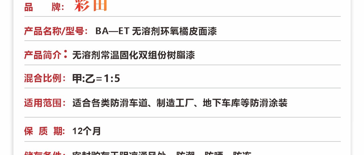 彩田BA-ET無溶劑環氧橘皮面漆